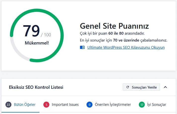 Bu alanda sitenizin kontrol listesine göre raporu çıkarılıp tarafınıza sunulur.
