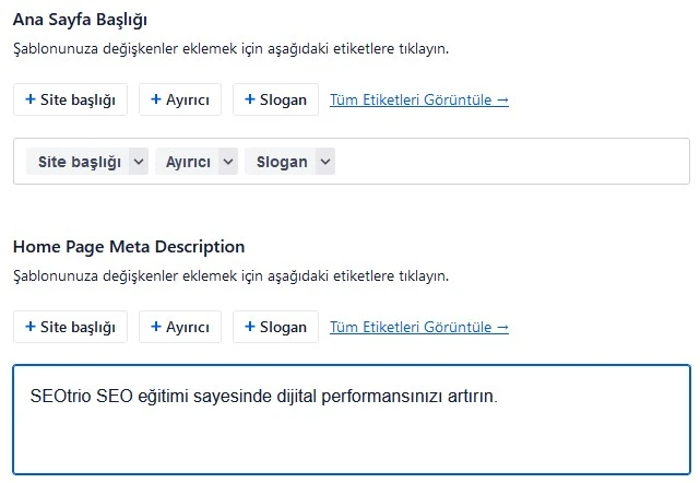 Burada sitenizin daha çok SERP’te (Arama motoru sonuç ekranı) nasıl görüneceği konusunda son ayarlamaları yapabilirsiniz.
