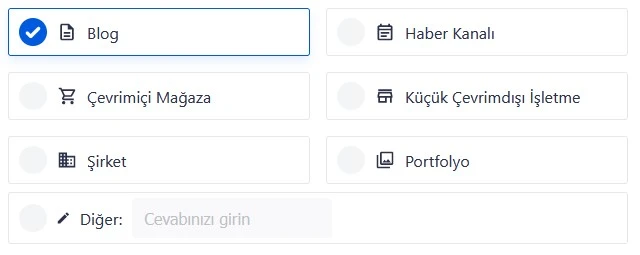 Genel olarak burada “blog” en uygun seçenek olarak görünmekle beraber daha spesifik bir alanda hizmet veriyorsanız sitenize en uygun seçeneği seçmeye özen gösterin.