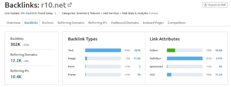 Bu raporlarla toplam backlink sayısı ya da hangi sitelerin link çıkışı yaptığını belirli sınırlar dahilinde görüntüleyebilirsiniz.