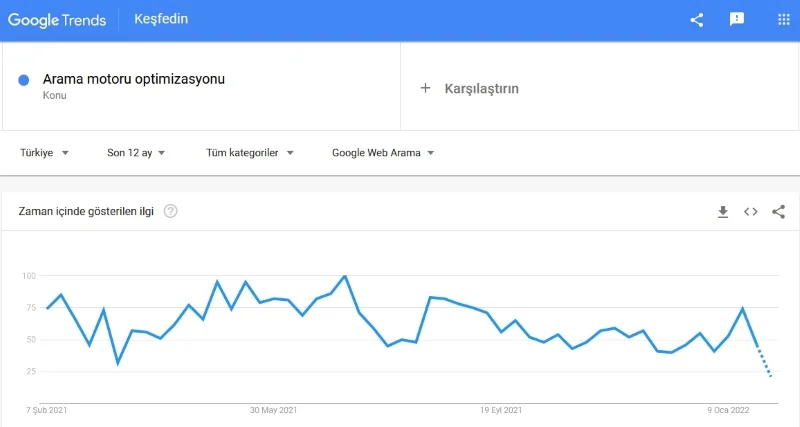 Google Trends kullanarak SEO çalışması yapma niyetiniz varsa ve kalıcı içerik üretmeyi planlıyorsanız araştırdığınız kelimenin her zaman aranan bir sorgu mu yoksa dönemsel olarak artış göstermiş bir sorgu mu olduğunu iyi analiz etmelisiniz.
