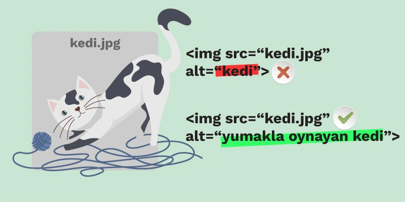Görselin ve hatta web sayfasının ne ile alakalı olduğunu botlara gösteren SEO sinyallerinden birisi de Alt etiketidir. Sitede bulunan her görselin mutlaka bu etiketle desteklenmesi gerekir.