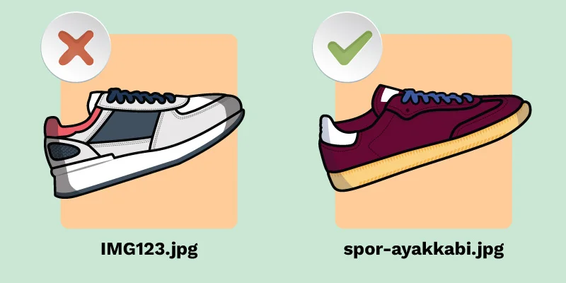 IMG123.jpg yerine spor-ayakkabi.jpg şeklinde düzenleme yaparak en önemli adımı doğru atmış olursunuz.