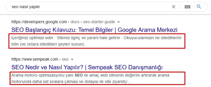 Meta açıklamaları da title gibi sayfanızın hiçbir yerinde görünmeyen ancak Google ve diğer arama motorlarının kendi kullanıcılarına içerik hakkında kısa bir bilgi verdiği alanlardır.