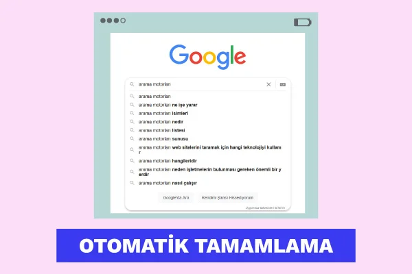 Siz arama yaparken Google tarafından farklı arama önerileri gösterilir: